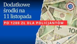 Zarząd Główny NSZZ Policjantów informuje, że w związku ze zbliżającym się Narodowym Świętem Niepodległości Komendant Główny Policji przychylił się do postulatów i oczekiwań NSZZ Policjantów dotyczących uruchomienia dodatkowych środków finansowych przeznaczonych na nagrody.