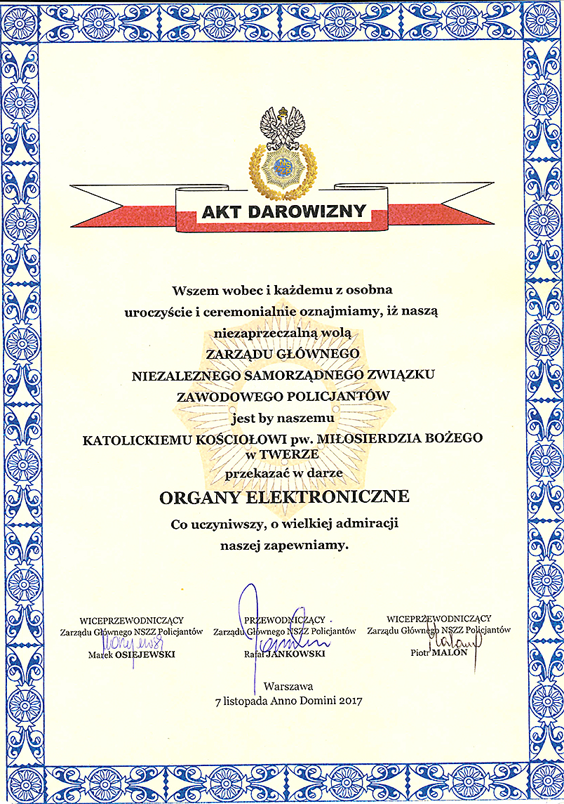 Dar Zarządu Głównego NSZZ Policjantów dla kościoła pw. Miłosierdzia Bożego w Twerze.