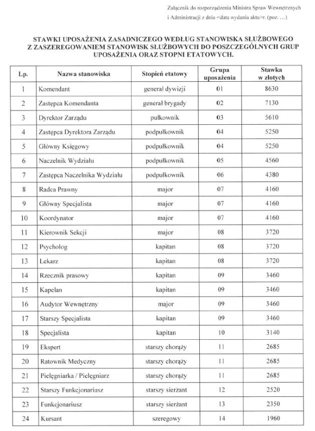 Zmiany w stawkach uposażenia zasadniczego funkcjonariuszy SOP