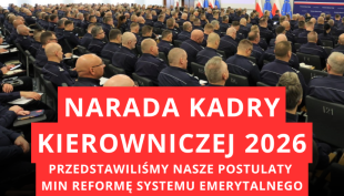 W dniach 18–20 lutego 2026 r. w Akademii Policji w Szczytnie odbyła się narada kadry kierowniczej Policji. Zarząd Główny NSZZ Policjantów reprezentowali Wiceprzewodniczący Andrzej Szary oraz Sławomir Koniuszy. W części narady, w której uczestniczyli Minister Spraw Wewnętrznych i Administracji Marcin Kierwiński oraz Wiceminister Czesław Mroczek, przedstawiciele Zarządu Głównego zabrali głos.