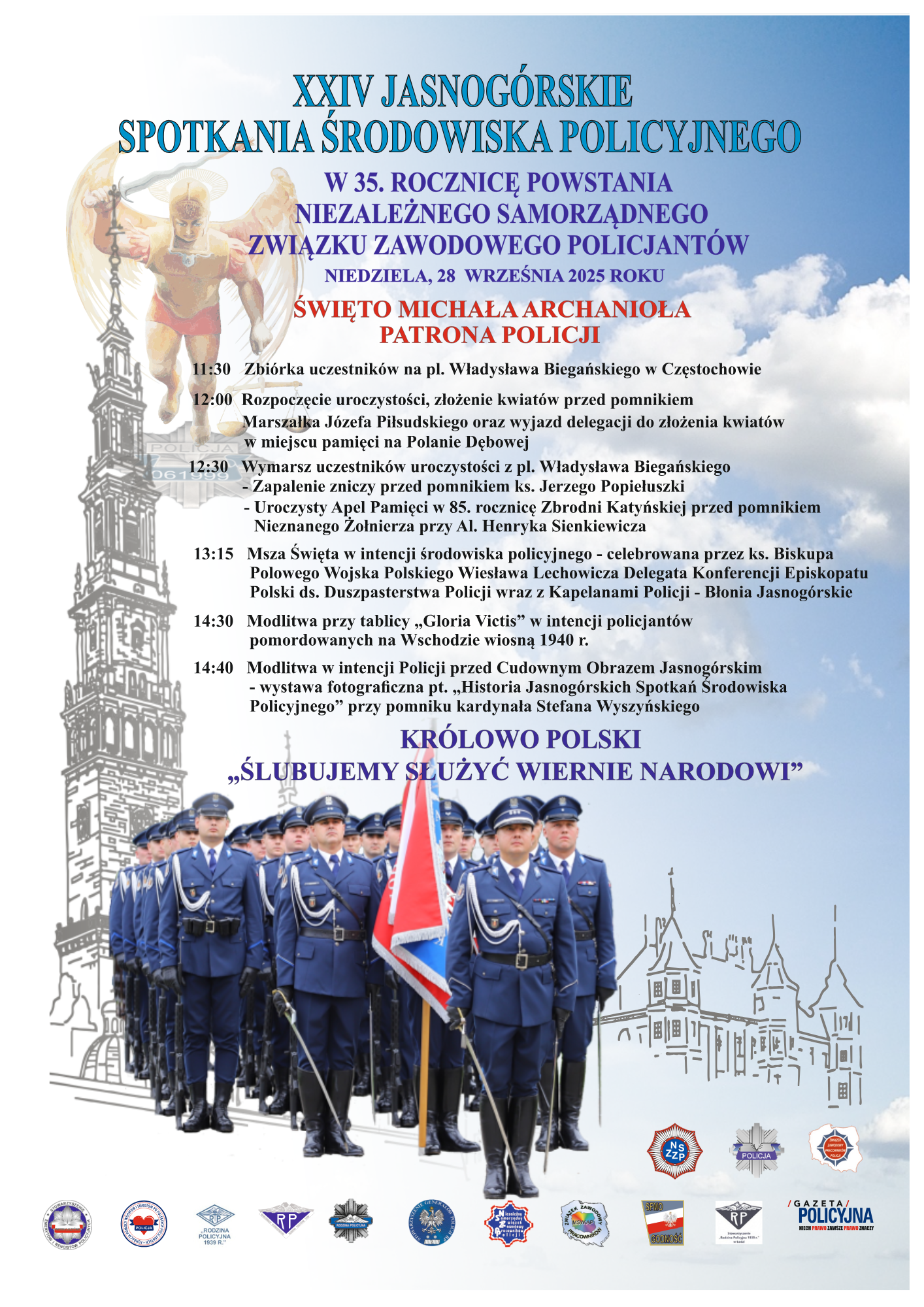 Już po raz dwudziesty czwarty środowisko policyjne z całej Polski spotka się na Jasnej Górze. Tegoroczne uroczystości, które odbędą się w niedzielę 28 września 2025 roku, nabierają szczególnego znaczenia – przypadają bowiem w 35. rocznicę powstania Niezależnego Samorządnego Związku Zawodowego Policjantów. Dla Zarządu Głównego NSZZ Policjantów, od początku współorganizatora tych wydarzeń, to czas refleksji, ale i dumy z drogi, jaką wspólnie przeszliśmy.